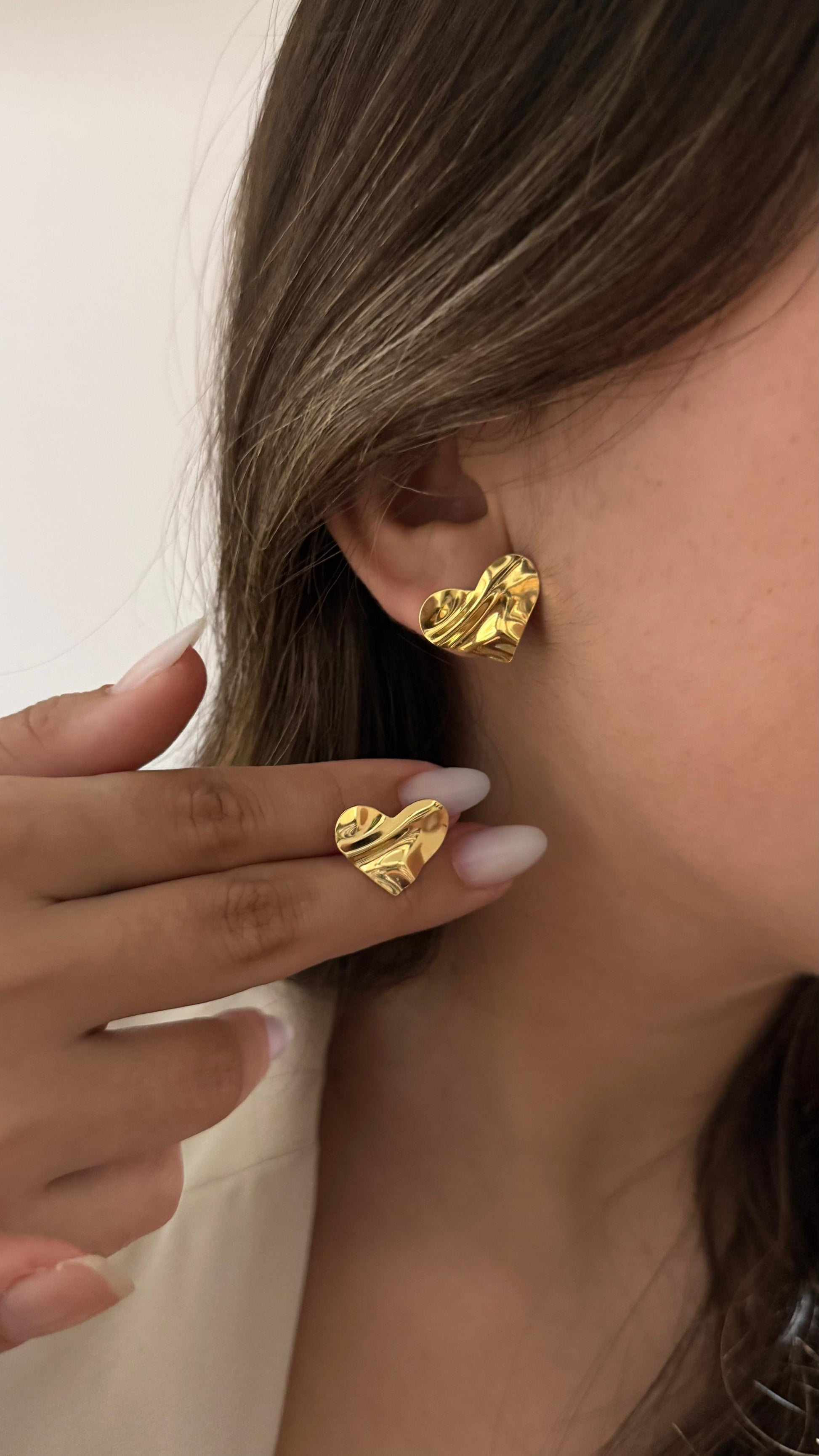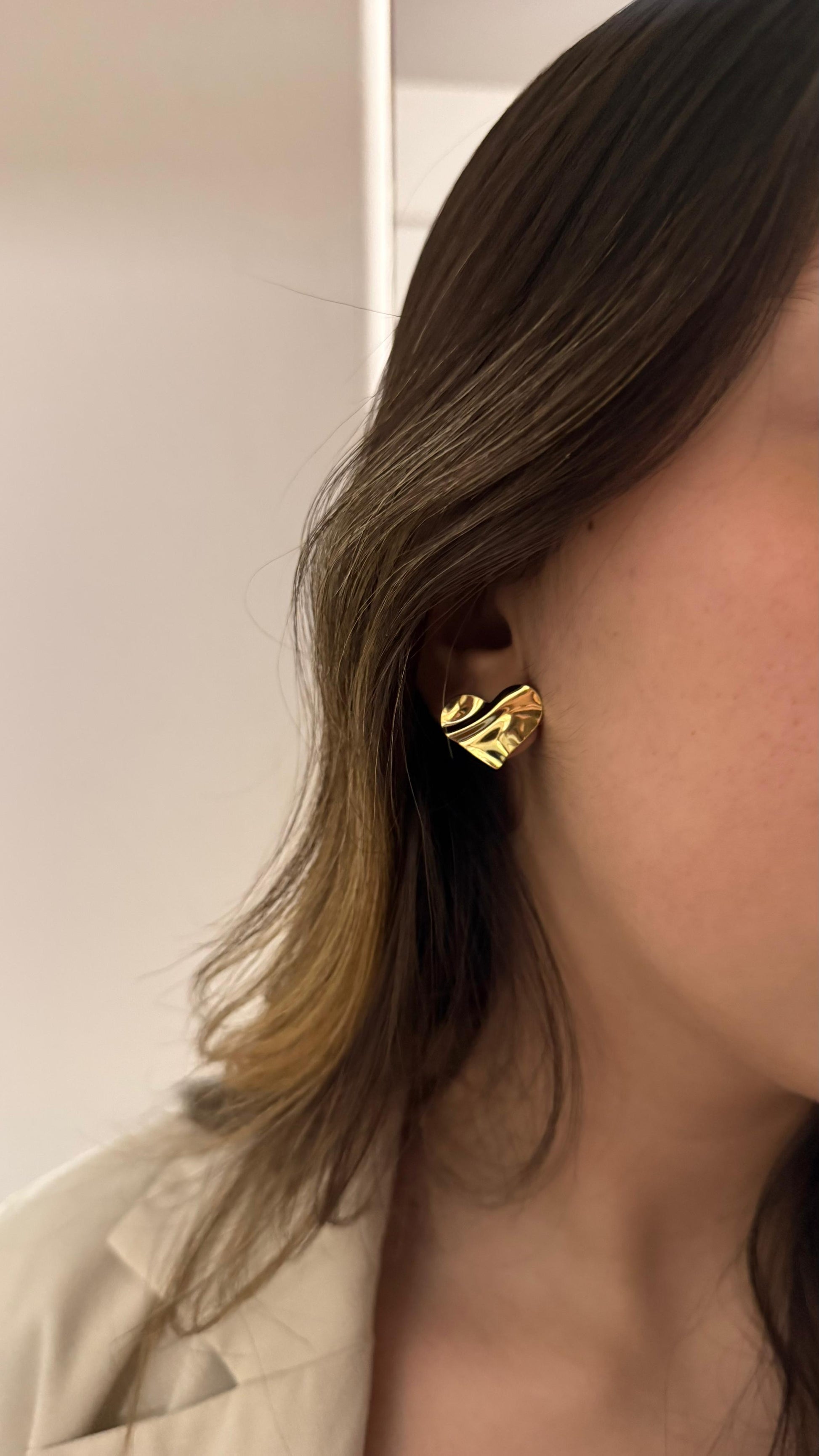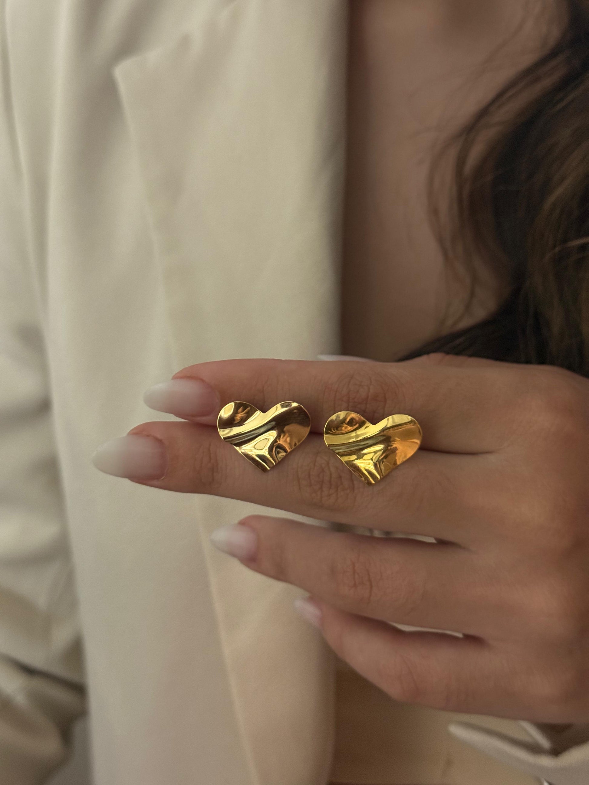 Este brinco em formato de coração é a união perfeita entre delicadeza e estilo moderno. Com acabamento dourado e textura orgânica que reflete a luz de forma elegante, ele transmite charme e sofisticação sem perder a leveza. É a peça ideal para quem gosta de acessórios que falam por si só, trazendo romantismo em um design contemporâneo.