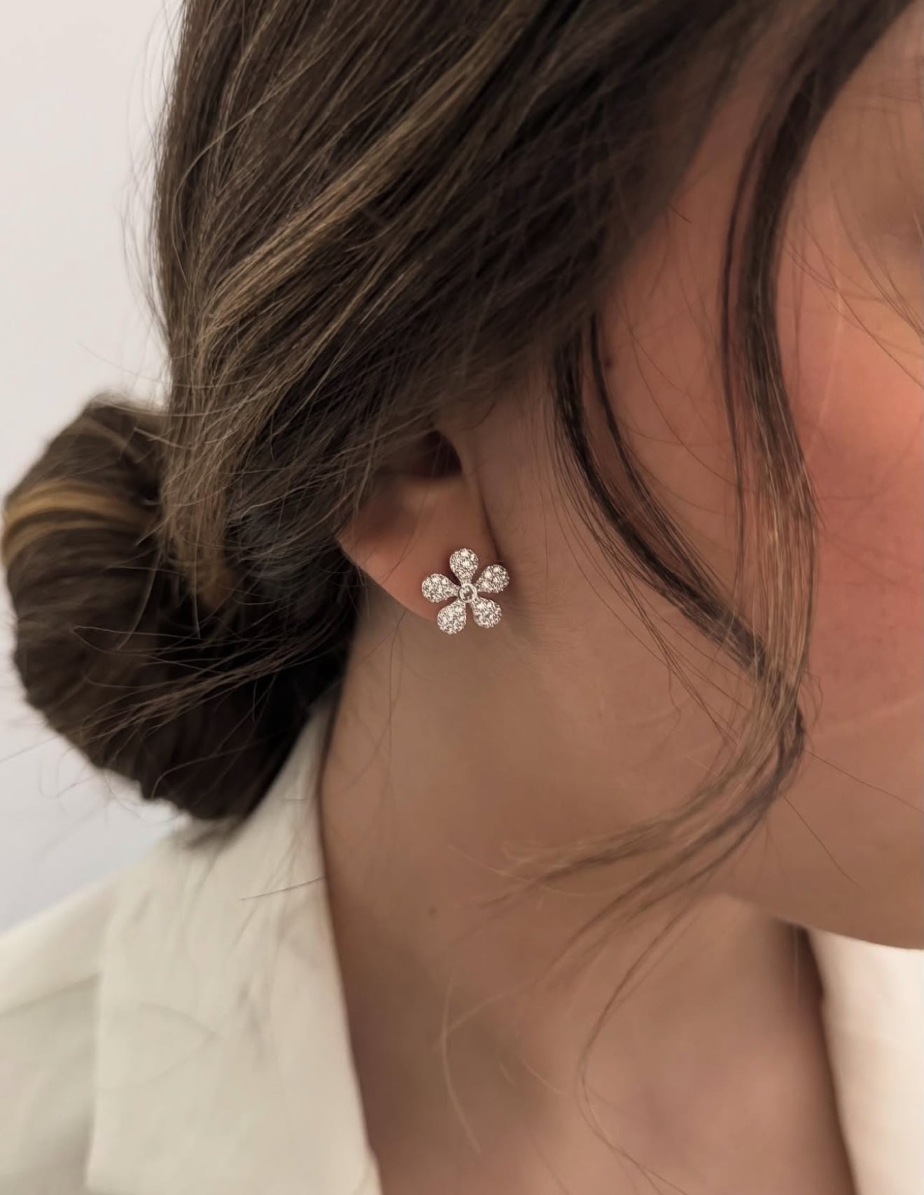 Este brinco em formato de flor é banhado em prata 925, garantindo brilho duradouro, qualidade superior e um acabamento sofisticado. Suas pétalas cravejadas em micro zircônias refletem a luz de maneira intensa e delicada, transmitindo feminilidade e romantismo em cada detalhe.
