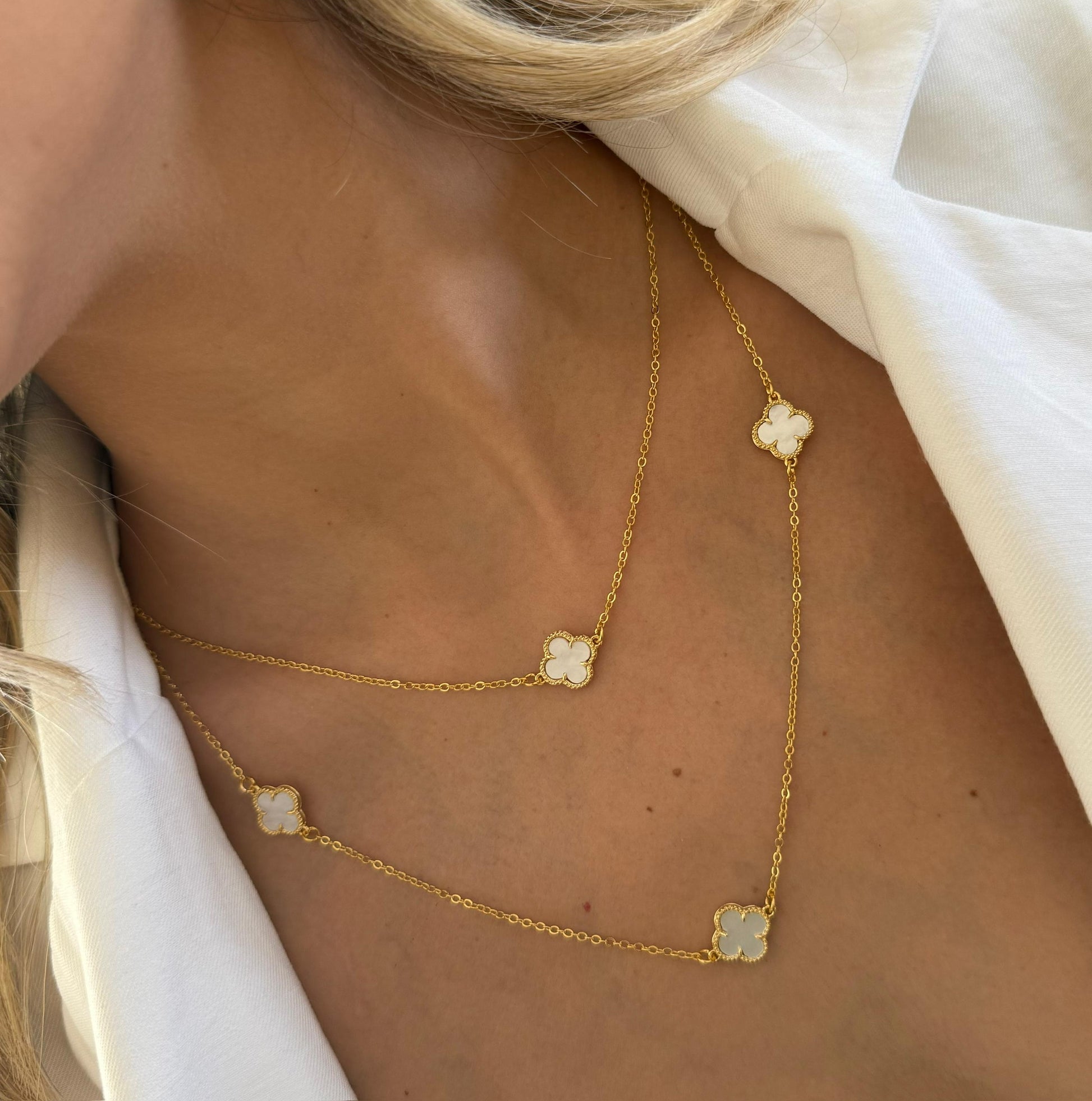 Conj. Trevo Branco (Brinco, colar e pulseira)